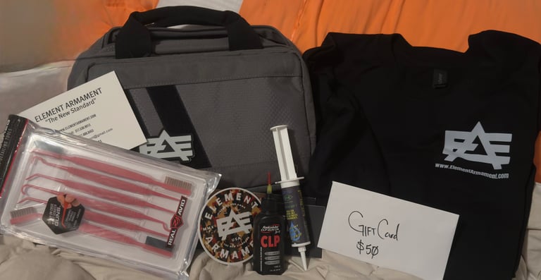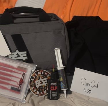 Gun Case, gun cleaning kit, T-Shirt, $50 Gift card